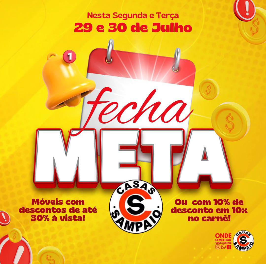Publicidade Nesta segunda e terça-feira as Casas Sampaio está com ofertas imperdíveis na super operação Fecha Meta 29/07/2024 08:52