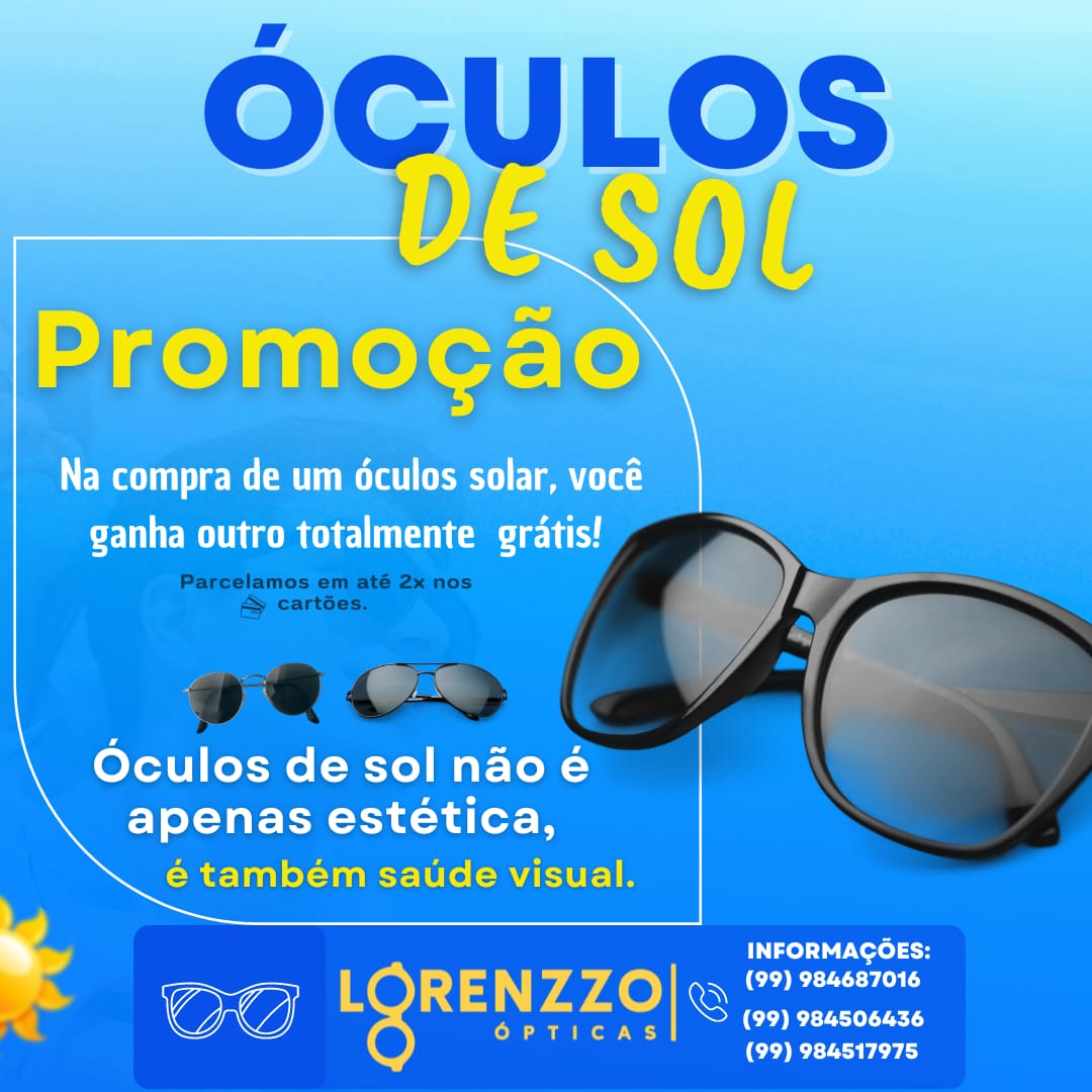 Publicidade Na Lorenzzo Ópticas na compra de um óculos solar você ganha outro totalmente grátis 29/07/2024 10:09