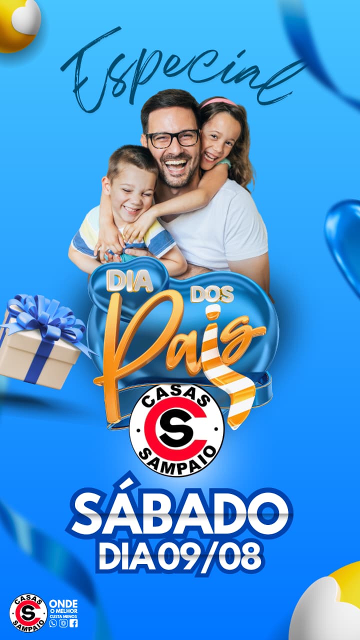 Publicidade Neste sábado (9) tem promoção imperdível para o dia a dos pais nas Casas Sampaio 08/08/2025 10:26