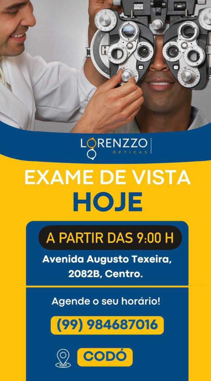 Publicidade Venha realizar o seu exame de vista nesta segunda-feira (6) na Lorenzzo Ópticas 06/11/2023 09:48