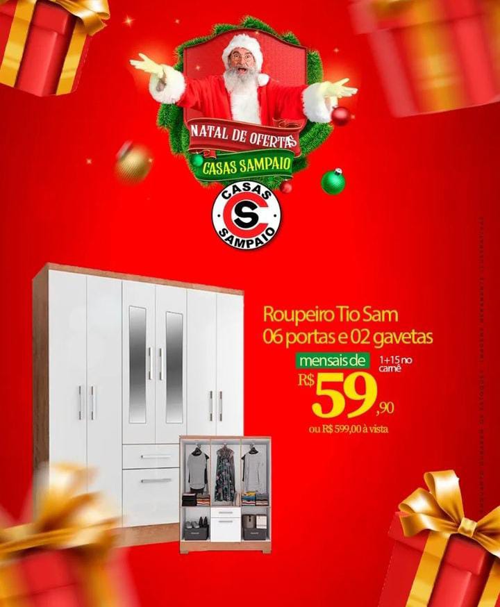 Venha realizar as suas compras de natal em uma das lojas das Casas Sampaio que estão localizadas em todo o Estado do Maranhão e Piauí e aproveite as ofertas imperdíveis.